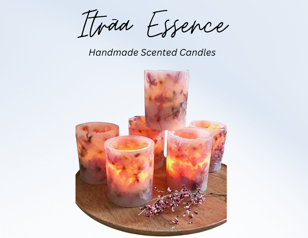 Itrāa Essence is a premium handcrafted candle brand based in Agra, India. We create elegant, gifting-ready scented candles designed to add warmth, calm, and beauty to everyday spaces.Our products are made in small batches with attention to fragrance quality, clean finishing, and aesthetic packaging.